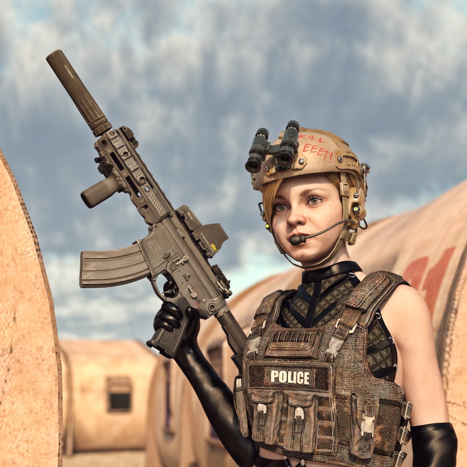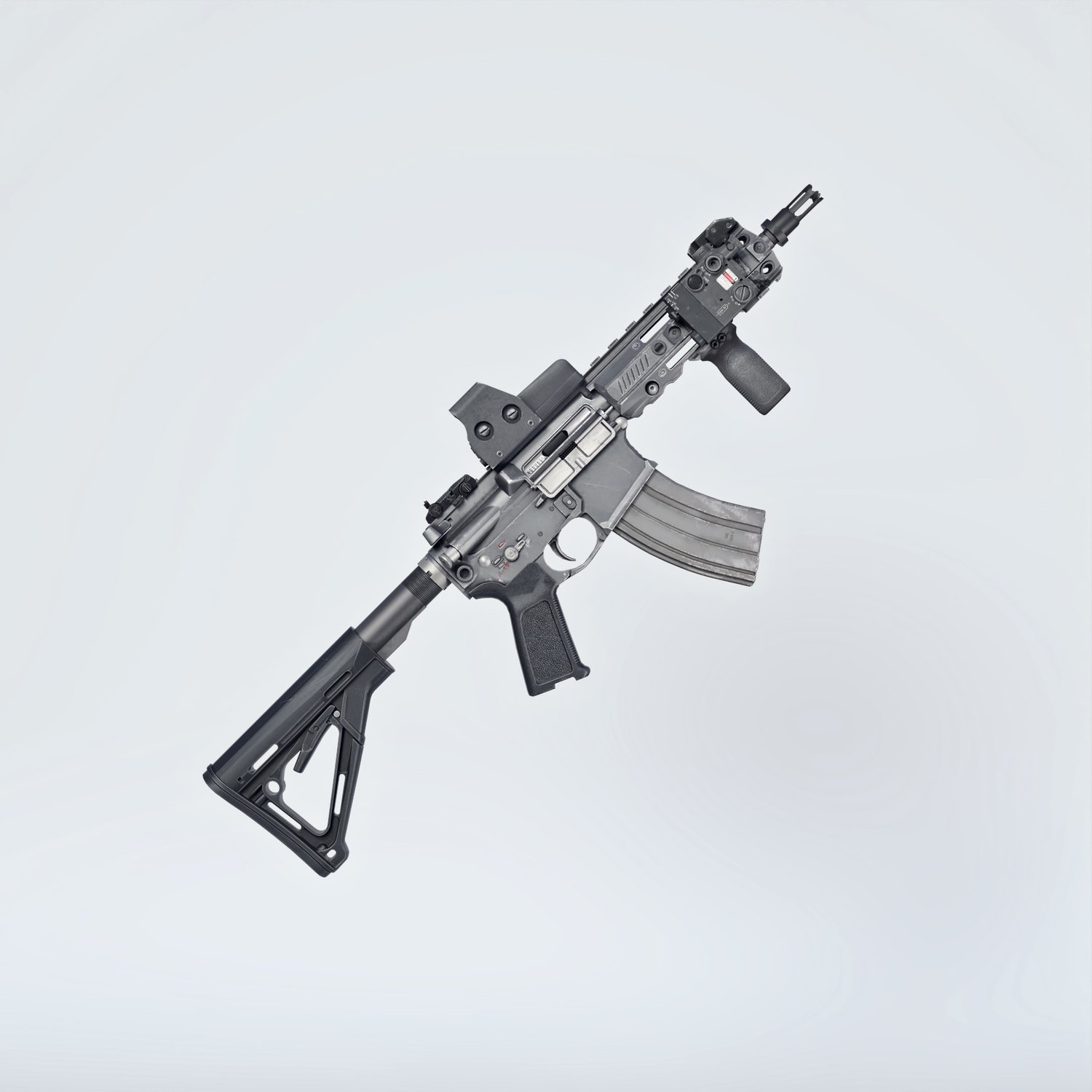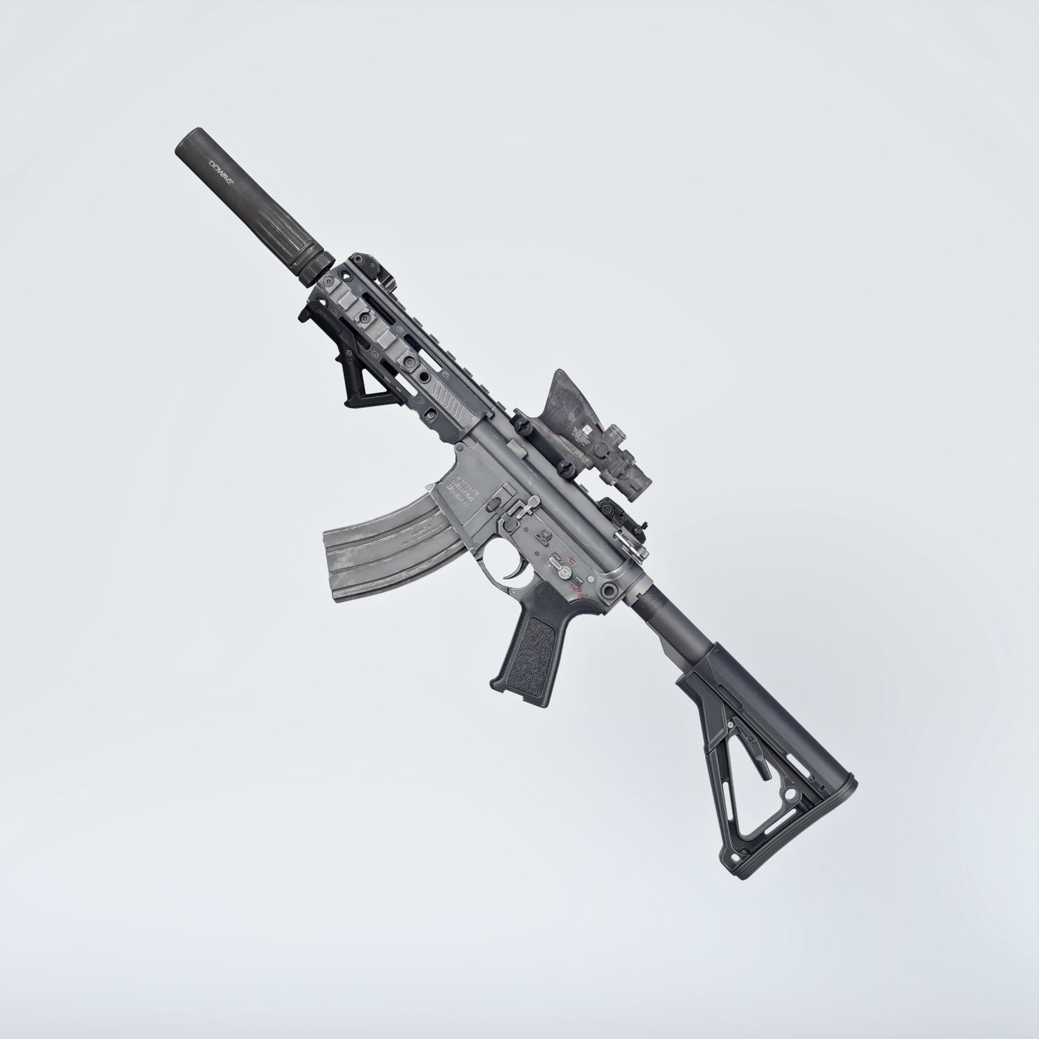 A very short take on the classic AR 15 assault rifle. Full power assault rifle cartridge in a very short and compact package. Converted and rigged for use with DAZ. Trigger, safety, bolt etc also rigged for more realistic pictures. Includes various accessories, such as silencer, a red dot, a laser, optic, front grips and some other accessories for various porpoises and pictures. Since parts are rigged, the gun can be used as just the basic configuration or an upgraded modern variant.