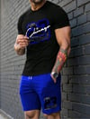 Manfinity Homme Men's Letter Print Round Neck Short Sleeve Casual T-Shirt & Drawstring Waist Shorts Set