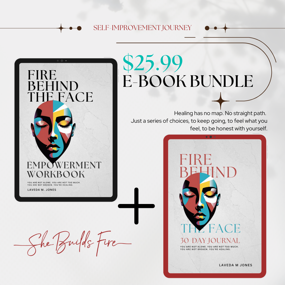 This powerful duo is designed to help women heal, rebuild, and rediscover their inner fire. The workbook walks you through guided lessons and reflections to confront what’s been hidden behind the smile, while the journal gives you space to process, pray, and grow through every chapter. Together, they create a sacred space for transformation—one page, one prayer, one fire at a time.