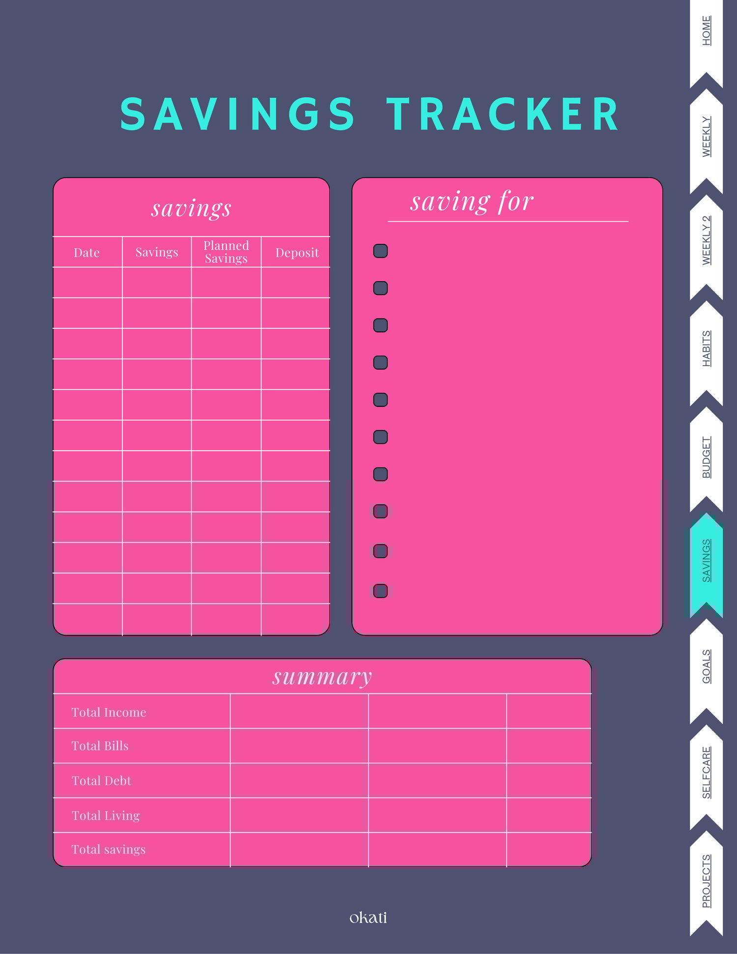 - Savings Tracker: Track your savings goals and progress with a motivational design.