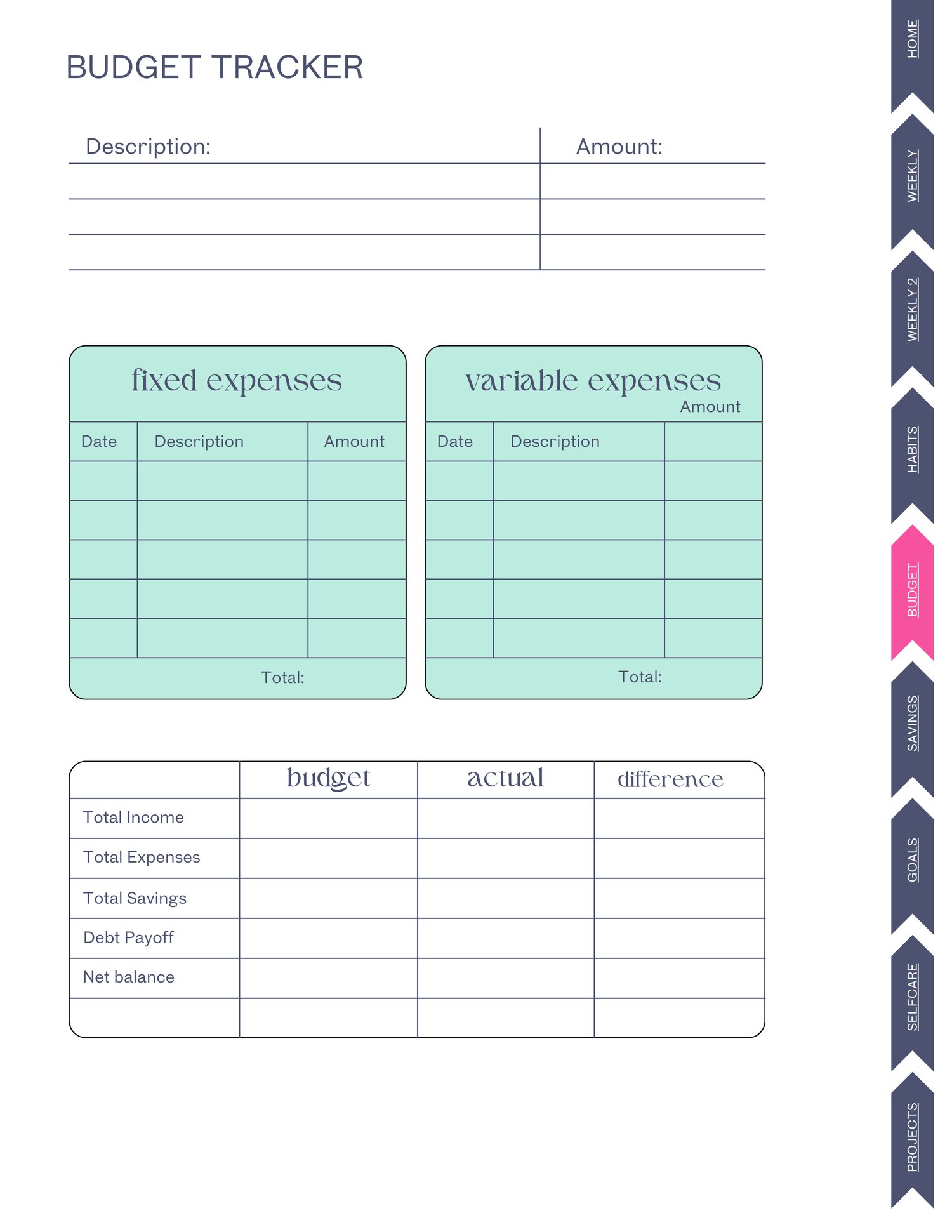 - Budget Tracker: Manage your finances with a bright and easy-to-use tracker for expenses, income, and savings.