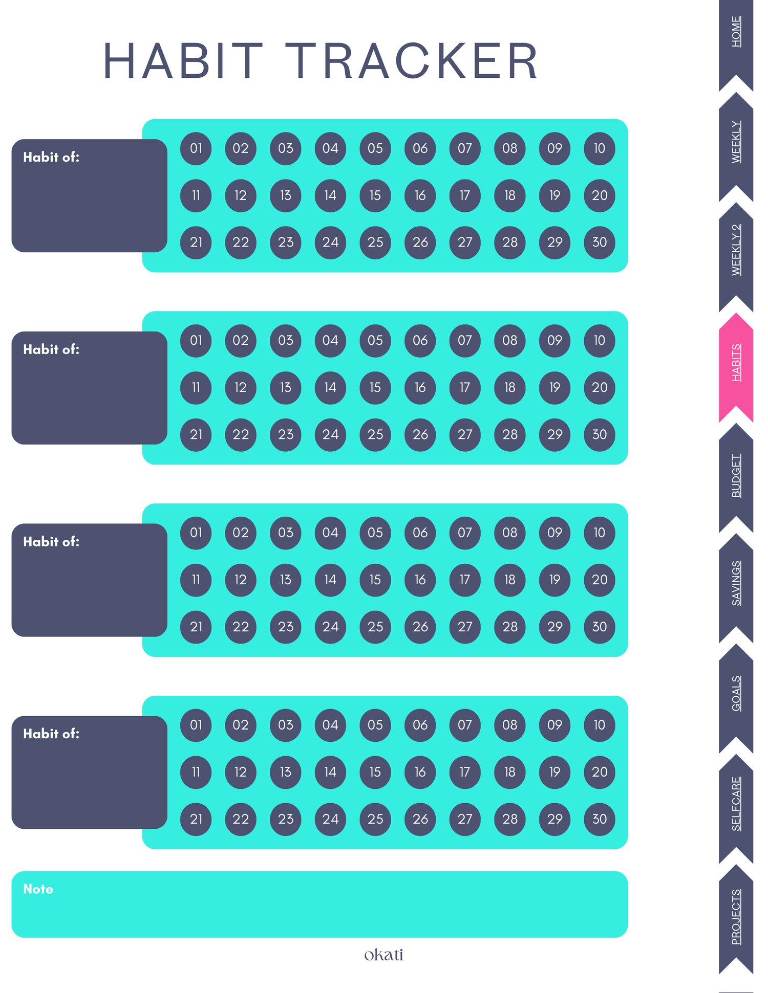 - Habit Tracker: Keep track of your daily habits in a lively, colorful layout.