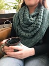 Large: Brine Dyeworks, BFL Worsted, 4 skeins 100% Blue Faced Leicester wool; 210 yds (192 m)/115 g or any worsted weight yarn of your choosing. This size will use approx. 840 yds (768 m)