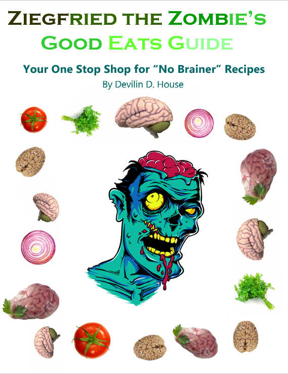 First and foremost I have to say, you have a great and profound brain on your shoulders, for making the most intelligent choice of choosing Ziegfried the Zombie’s Good Eats Guide: Your One Stop Shop for “No Brainer” Recipes. This cook book was named so, for it’s brilliant 2 ingredient recipes, which will not utilize a lot of brain power to make, thankfully. Lord knows I need all the help I can get.