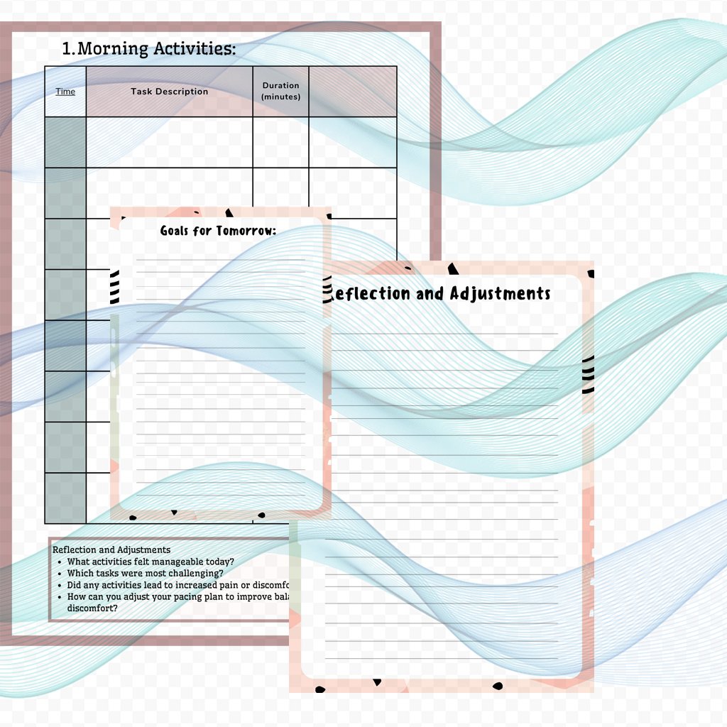 Use this worksheet to plan your daily activities by dividing tasks into manageable segments and alternating periods of activity with rest or relaxation. Fill out each section with specific tasks, the time allocated for each task, and planned rest periods.