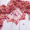 Caeli (pronounced Kie lee) is Latin for heaven, and the Caeli Shawl is just a little bit of heaven! The lace is quick and easy to work up and looks amazing even with variegated colorways. Plus, the sparkle in Oink Pigments Disco adds an extra starry touch!