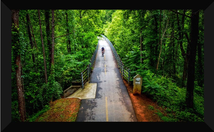 This a is a shot of a man cycling through a Cobb County Ga Park in early spring. This shot was taken by PROLYPHIQ. (Sean West)