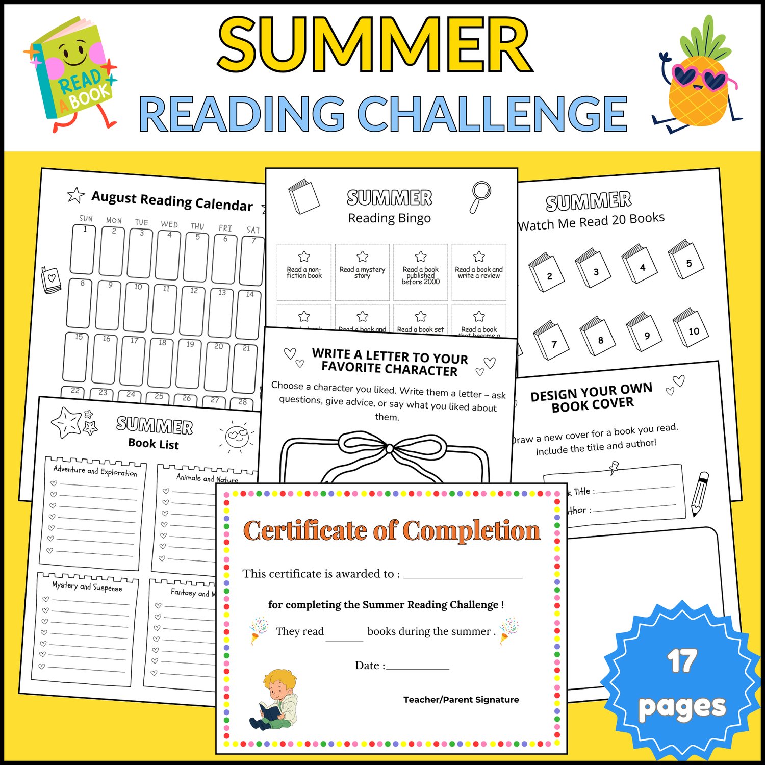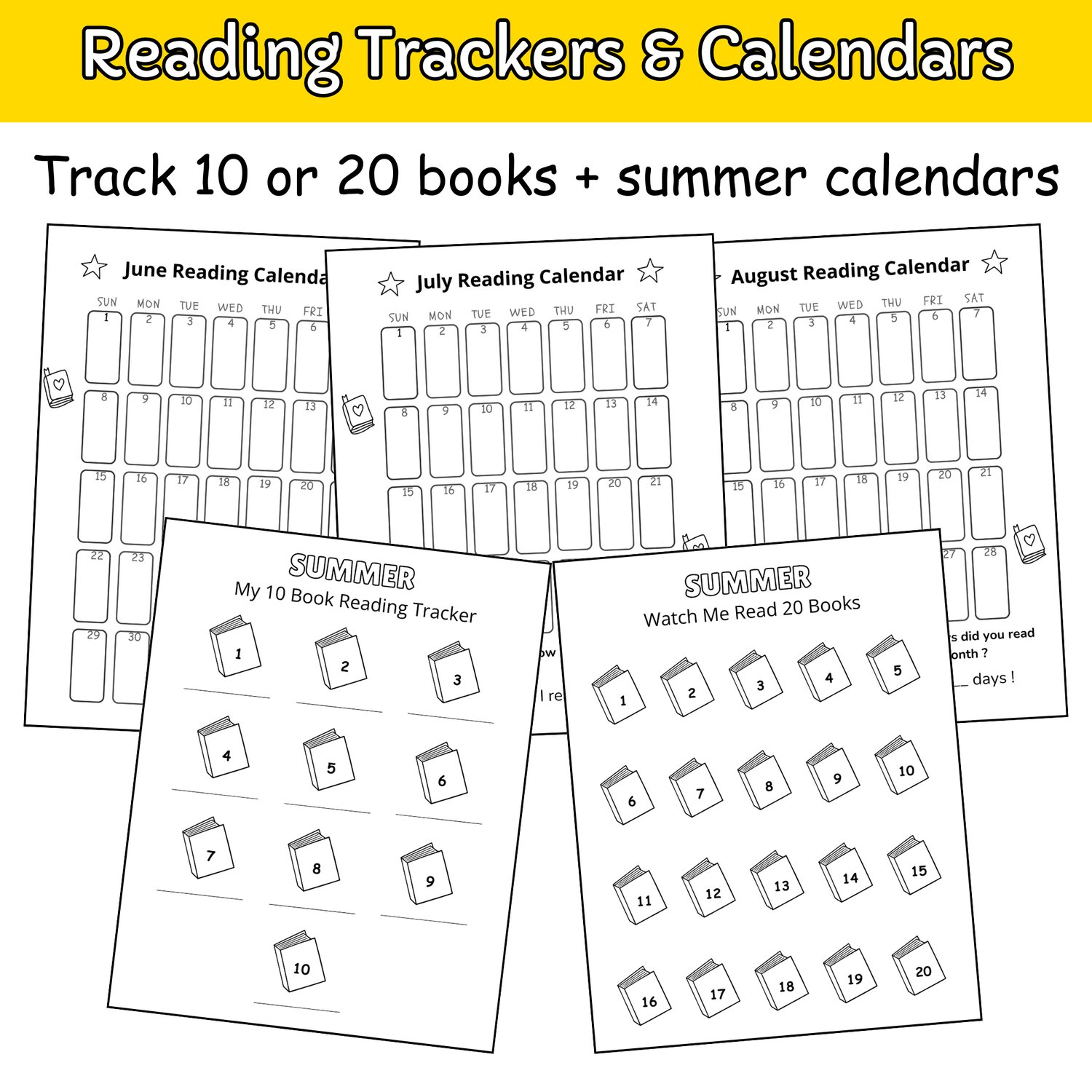 - Monthly calendars (June - july–August) to log daily reading.