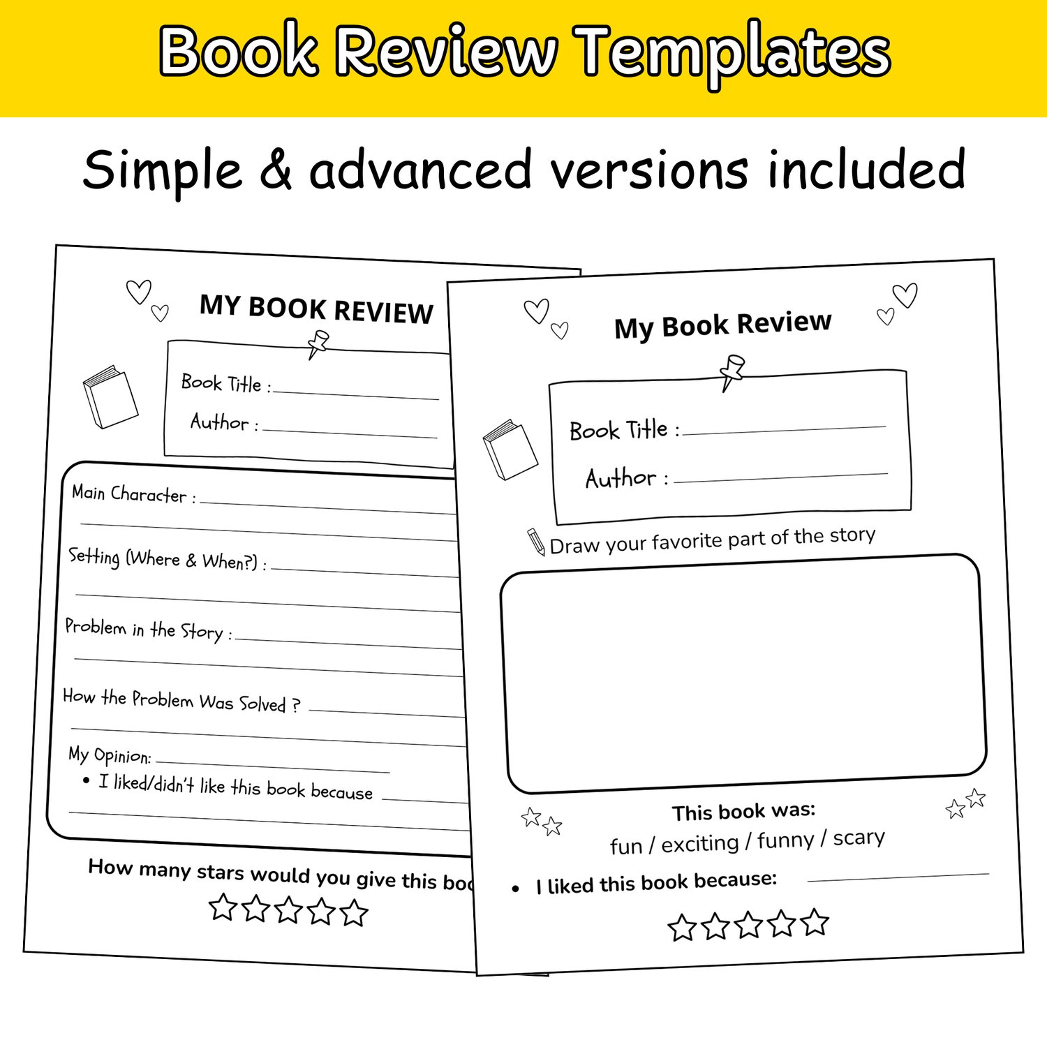 - Book Review / Reading Response Pages (2 Levels):
