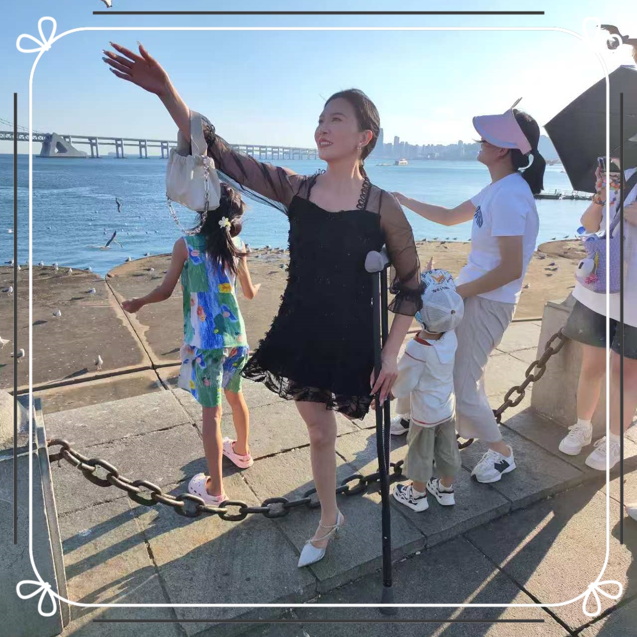 Rika is going to the beach today. She got up early and put on her favorite black long skirt, which made her stumps appear faintly and very attractive. She also wore high heels today. It is hard to imagine how she could walk a long distance with one foot in high heels. She also challenged some thrilling projects during the trip, which made her feel very happy today.