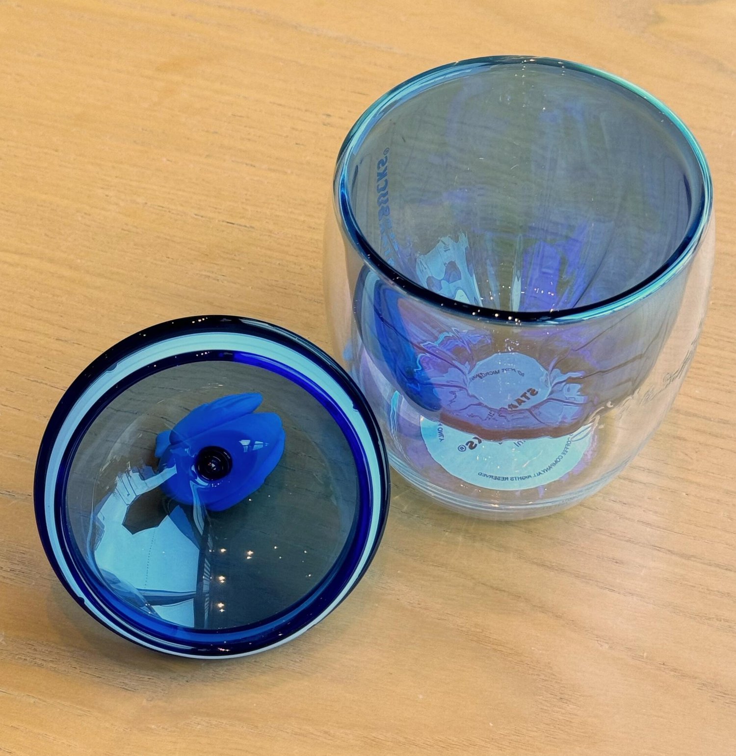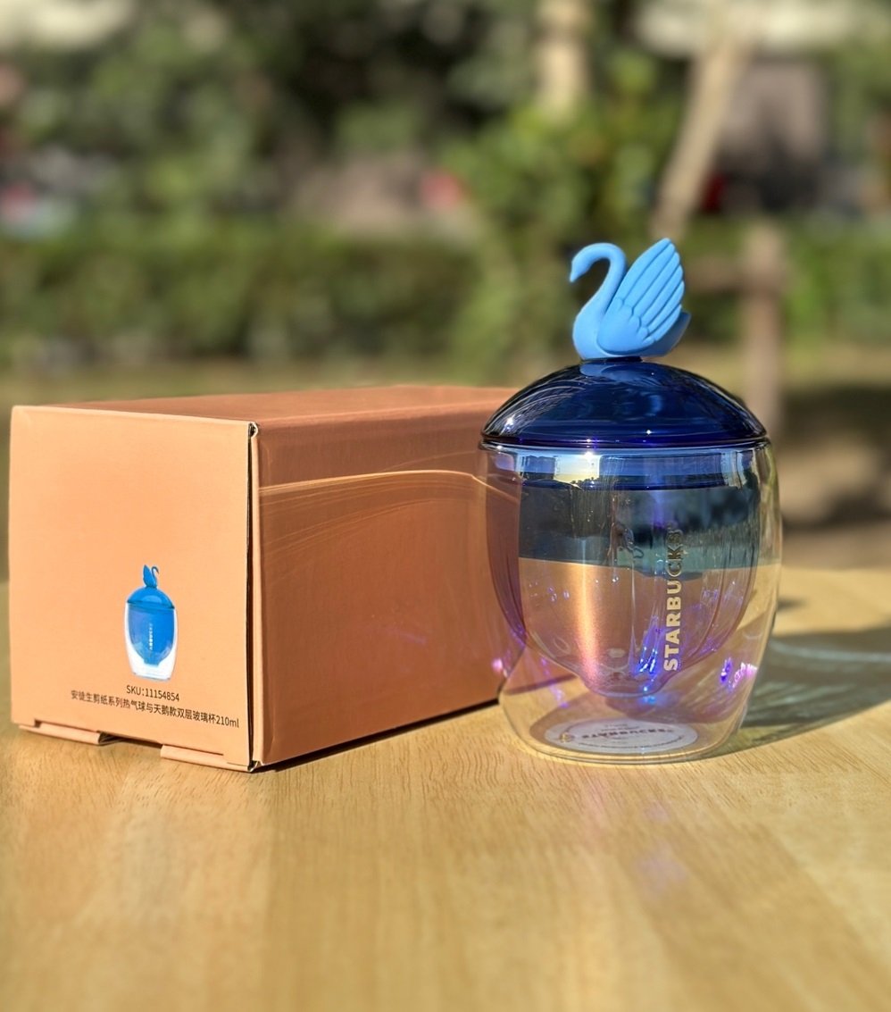 2023 Starbucks China Hans Christian Andersen Papercut Series 7oz Blue Double-walled Glass Hot-air Balloon Cup with Blue Swan Lid
