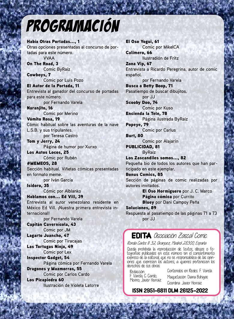 Programación: By Raiz, Luis Pozo, Merino, Teresa Castro, Xurxo, Rubén F., Iván García, Alblanko, Ed Vill, J.M. Studios, Tiracajas, Lex Gromiko, Fernando Varela, Carlos Cardo, Violeta Torre, MikelCA, Fritz, Ricardo Peregrina, J.J., Kuso, Carlus, Alajarín, J.C. Marco, Currito y Dani Campoy Peña.