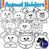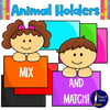 This pack contains the following animals: bear, bee, bunny, butterfly, cat, dog, llama, owl, panda, and pig. Also contains boxes that you can use so they can "hold". The boxes come in black, blue, green, orange, pink, purple, and red.