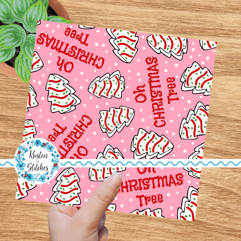 It's Debbie cake season! Oh Christmas tree cakes on pink.