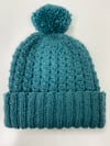 Knitted in an Aran/ Worsted weight yarn, this cosy warm hat is perfect for long walks on a windy beach.