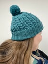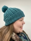 You begin with the rib section, work the cable pattern for the main part of the hat, and then start the decreases for the crown shaping. Once finished knitting, the hat is sewn up down the centre back using mattress stitch, creating a neat seam on the inside. Finally, your choice of your own handmade pompom, a ready made pompom, or simply no pompom at all!