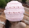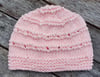 This chunky knit Beanie is worked in an easy eyelet stitch and has a garter stitch brim. It knits up really quickly and is so cosy to wear.