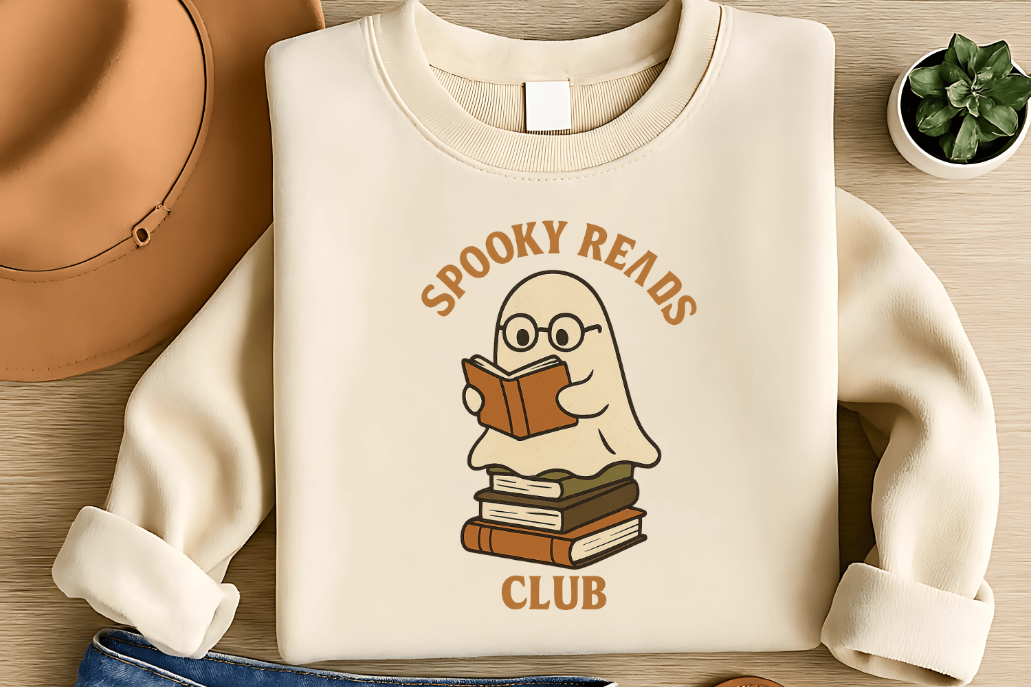 Spooky Reads Club Sublimation PNG – Cozy Ghost Clipart for T-Shirts – Halloween Book Lover Theme – 300 DPI Instant Digital Download