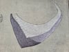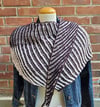 This is my current favourite shawl shape: a less-deep, more wide, slightly asymmetrical triangle. It’s wider than many shawls, compared to its depth, making for extra ‘wrap-ability’ and warmth. The fabric hangs on the bias, and the linearity of the two-colour brioche adds visual interest.