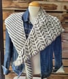 Version Two (beige and cream) is bit more challenging, featuring a chevron pattern created with increases and decreases.