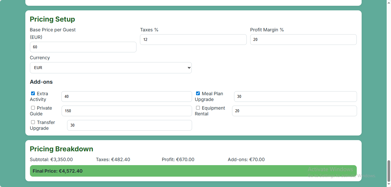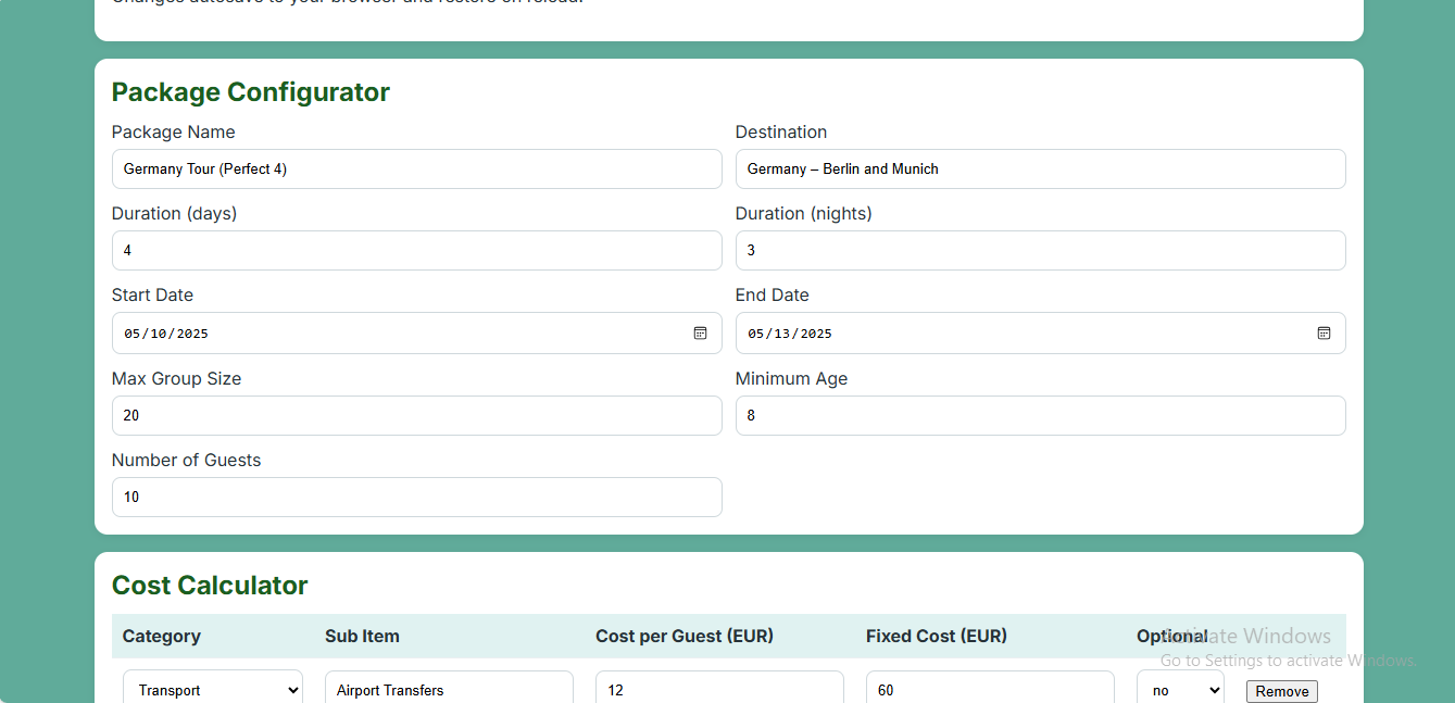 🌟 Create & Price Guided Travel Packages With Confidence
