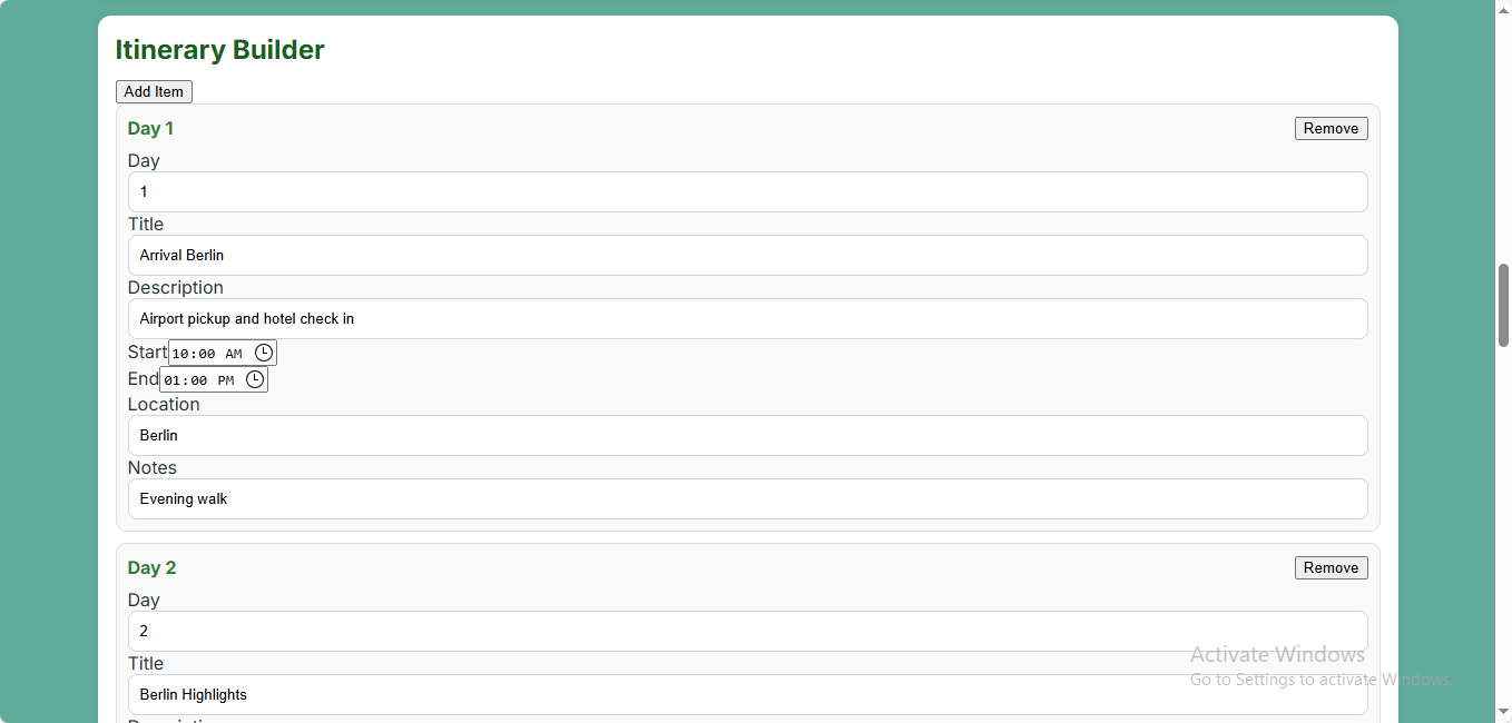 ✅ Browser-Based Itinerary Builder
