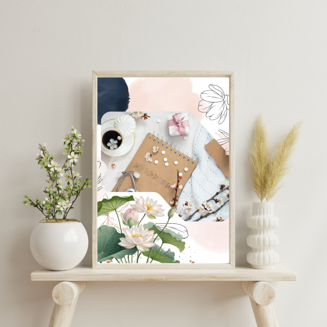 - **Background:** A soft, muted color palette featuring pastels like blush pink, lavender, and sage green to create a calming and sophisticated backdrop.
