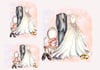Watercolor wedding design in 3 sizes, square plus A4 in both horizontal and vertical. Ideal for gifts, cards and invitations. On a watercolour background.