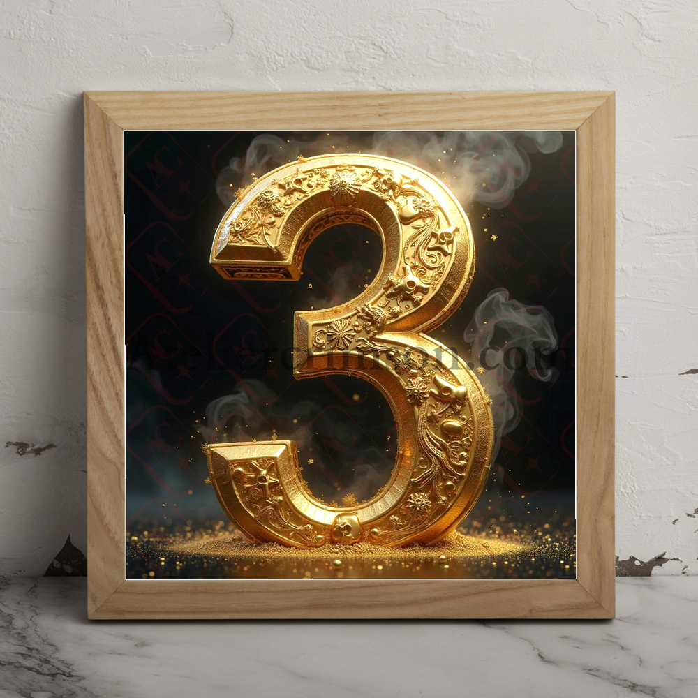 Number 3 gold maya skull Skull-inspired engravings, hyper-realistic rendering. Mystical atmosphere with subtle smoke effects. Perfect for high-end typography and design projects. GoldTypography LuxuryDesign SkullArt"