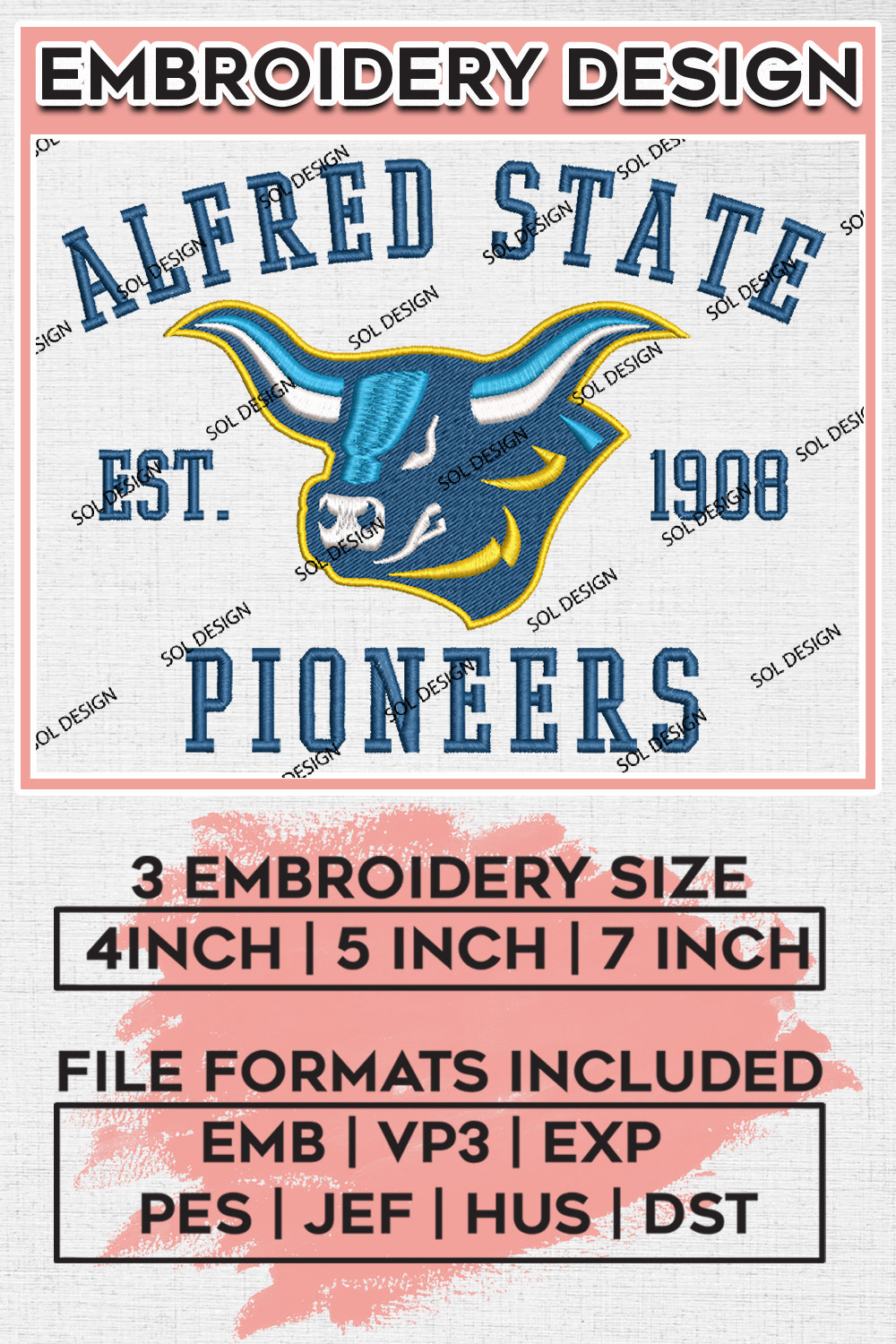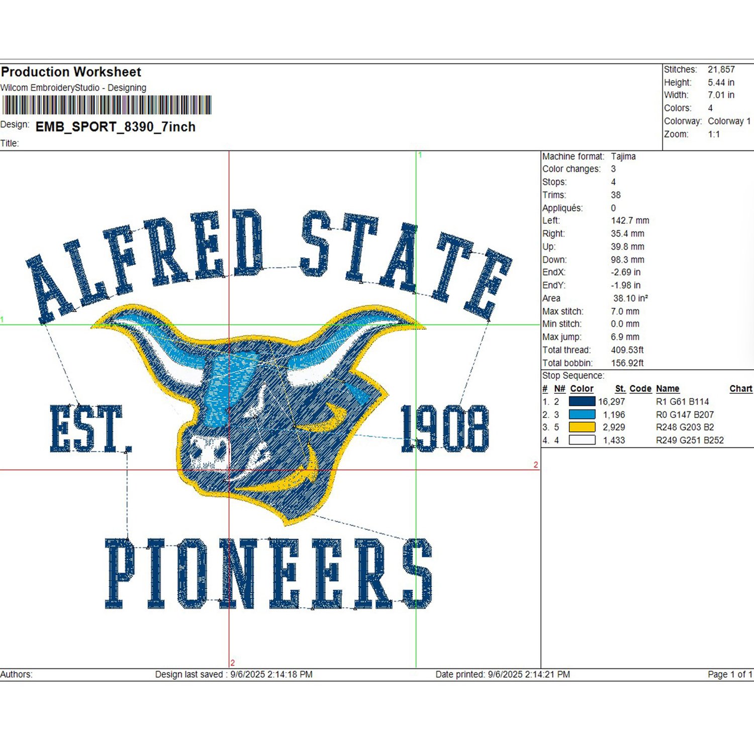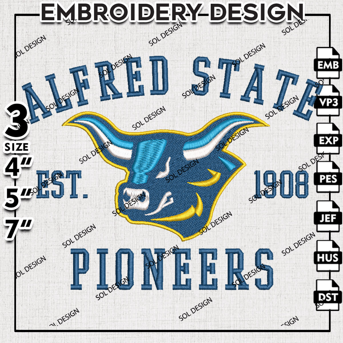 Alfred State Pioneers College Football Team Est 1908 Logo Embroidery Designs, Ncaa Embroidery Files, NCAA Alfred State Pioneers Team Logo Embroidery, Game Day Machine Embroidery Design, Digital Download