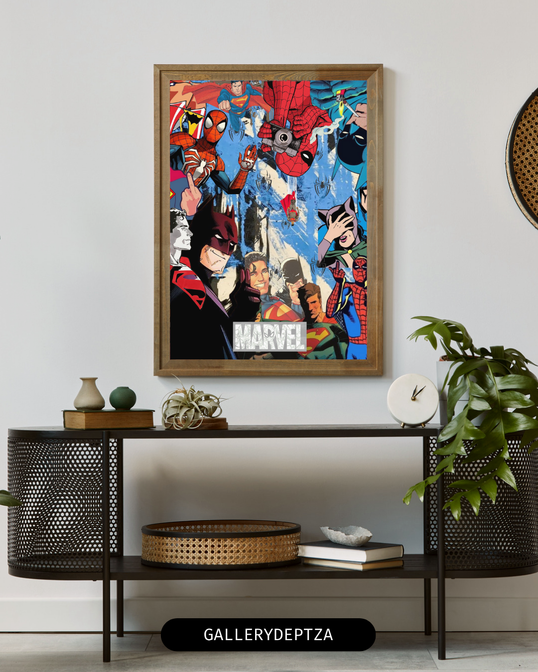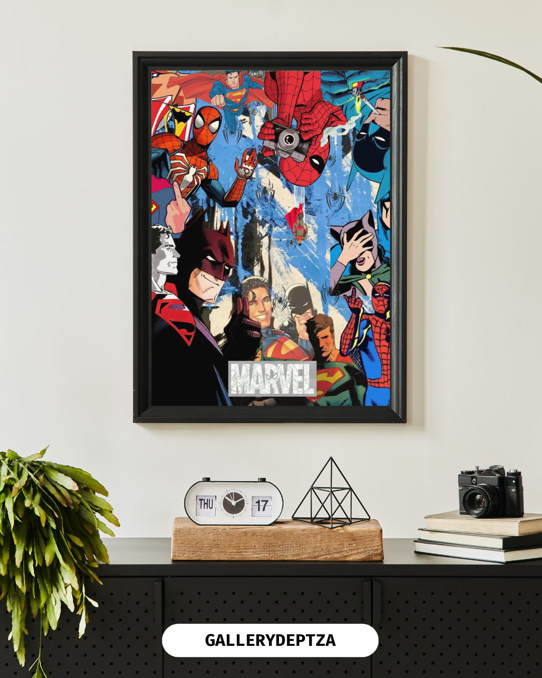 When worlds collide β art gets legendary. This Marvel x DC crossover animated wall art brings together Spiderman, Batman, and Superman in one bold, electrifying digital piece. Set against a smooth blue and white ombre background, this artwork blends heroism with modern design β perfect for collectors, fans, or anyone who loves a cinematic pop of style.