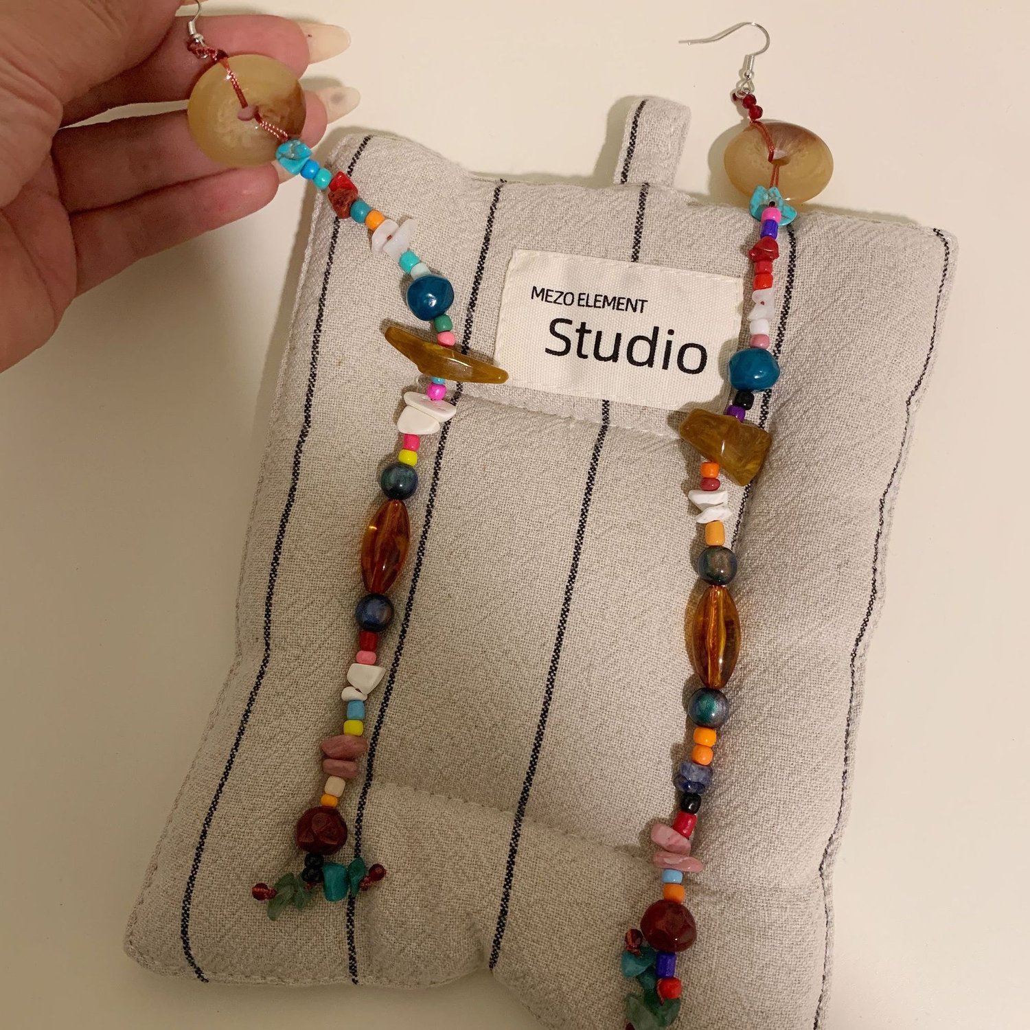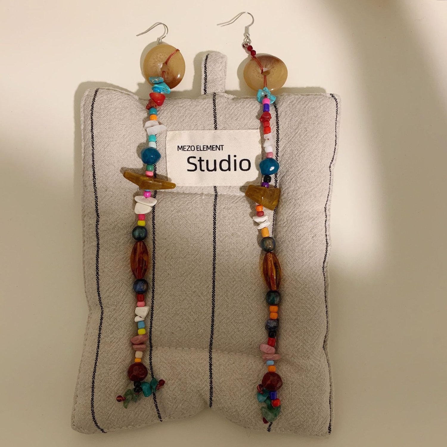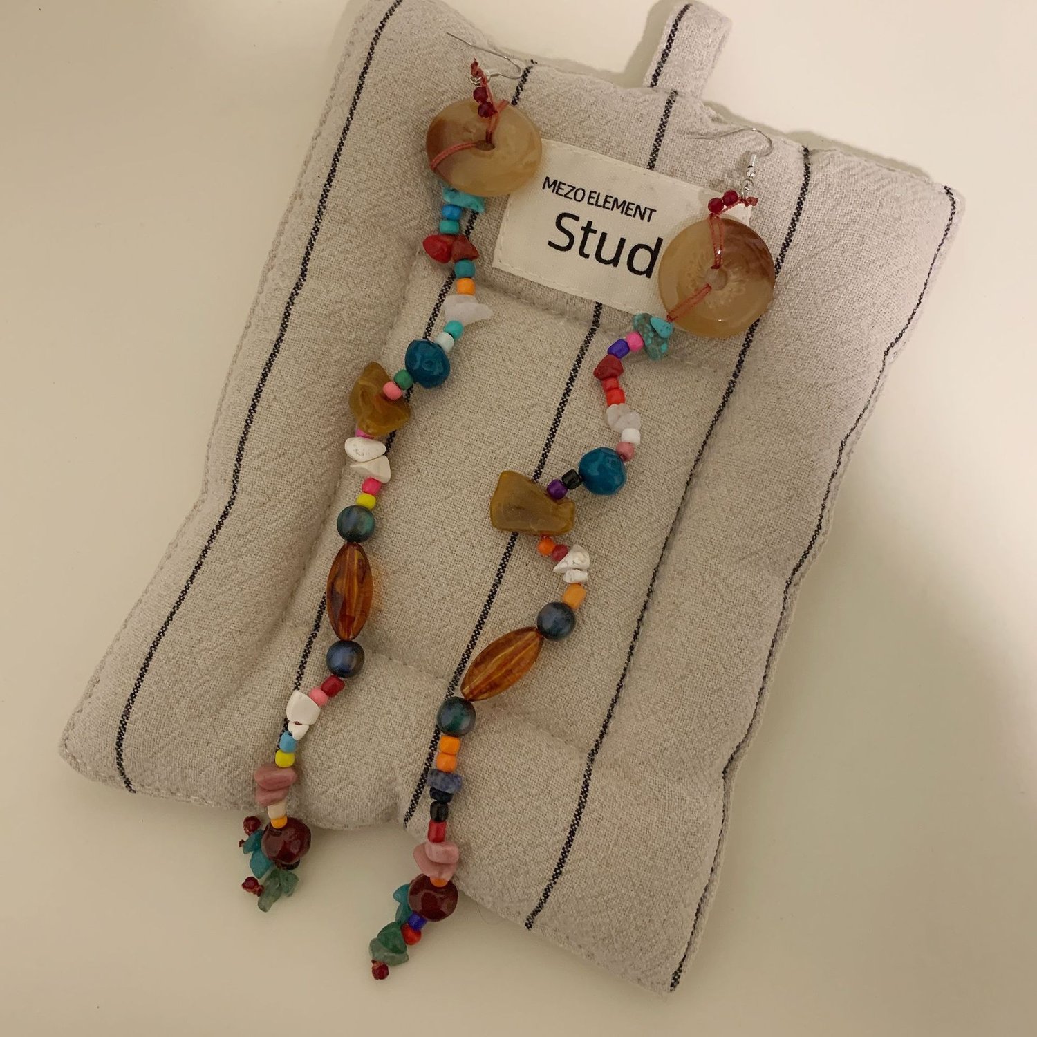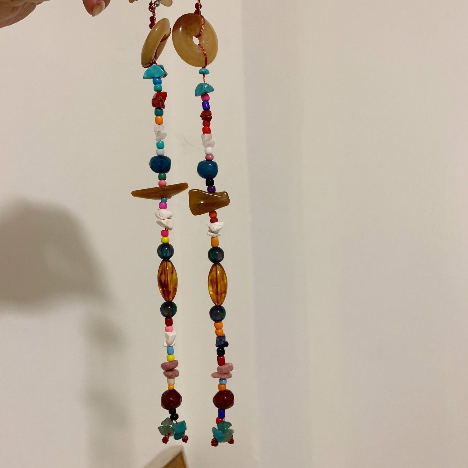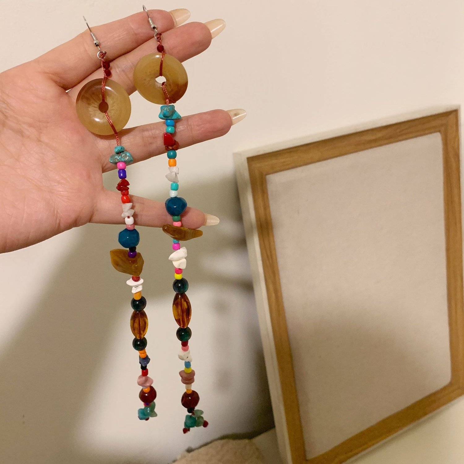 Boho Tibetan ethnic handmade mixed colorful beaded natural stone long earrings