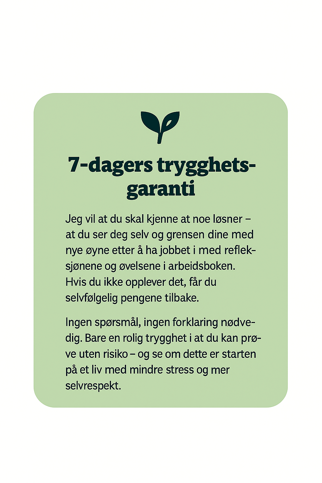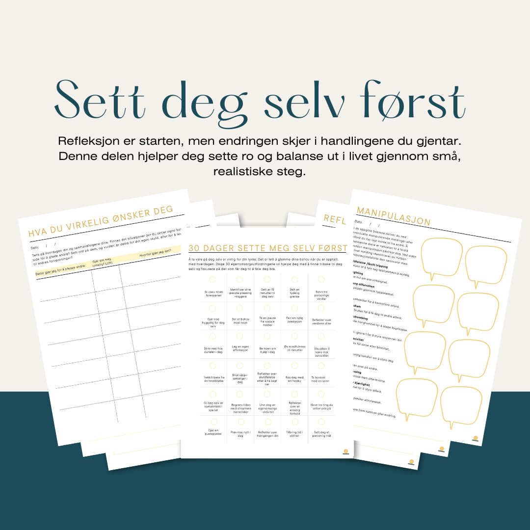 Du er ikke svak, og du trenger ikke “ta deg sammen.” Du har bare lært at verdien din ligger i hvor mye du gjør for andre. Og det er nettopp det Stop People Pleasing-arbeidsboken hjelper deg å endre.