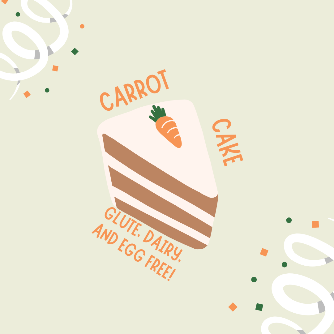 This is a gluten, dairy, and egg free carrot cake recipe. It's full of flavor and great with a basic buttercream frosting!
