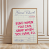 "Bend when you can, Snap when you have to." Printable Wall Art. This beautiful, fun, trendy wall art is the perfect way to brighten up a room and add some personality. It reflects a modern, fun style, and makes for the perfect room wall decor.