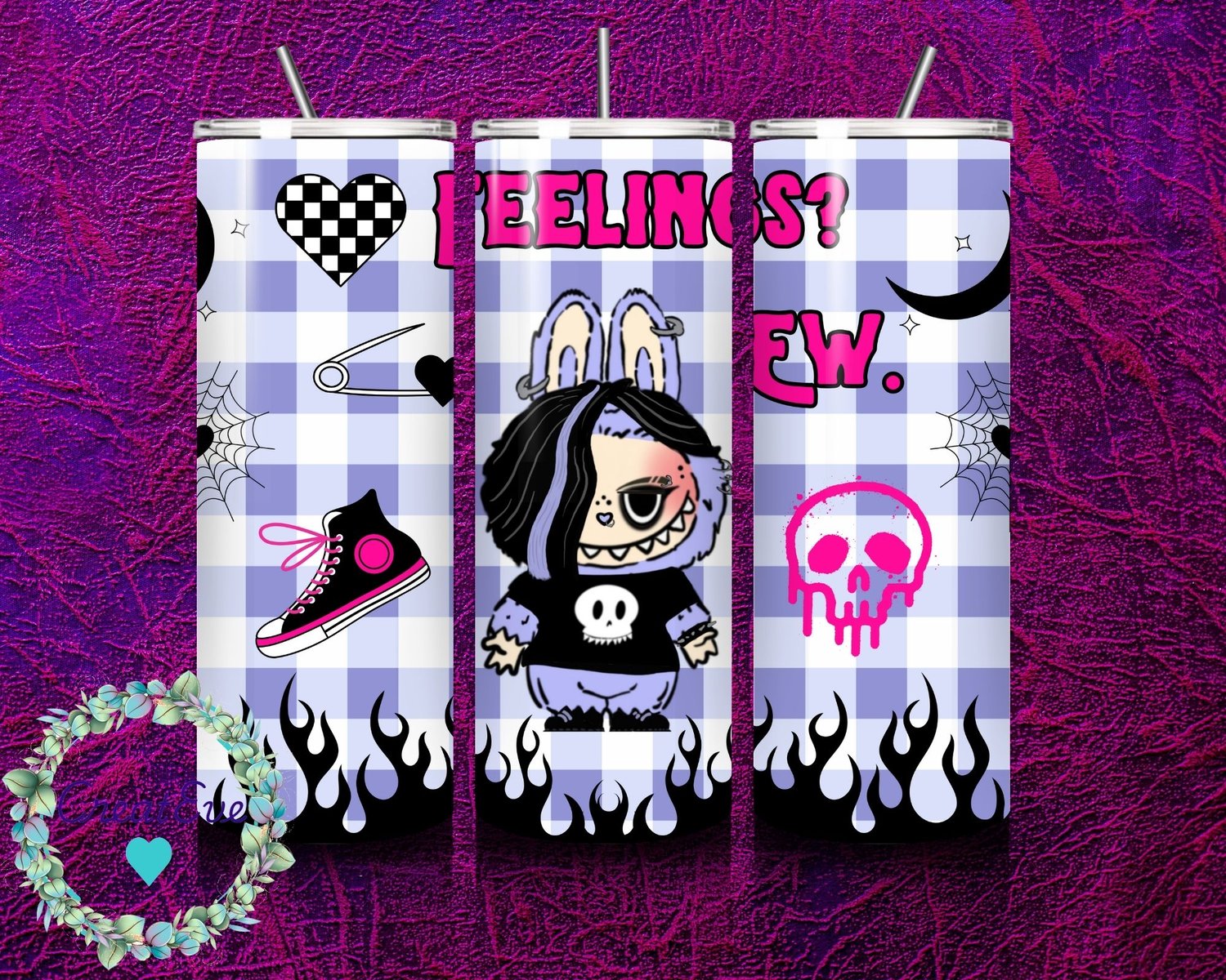 Hand-Drawn Emo Labubu 20oz SEamless Skinny Tumbler Wrap