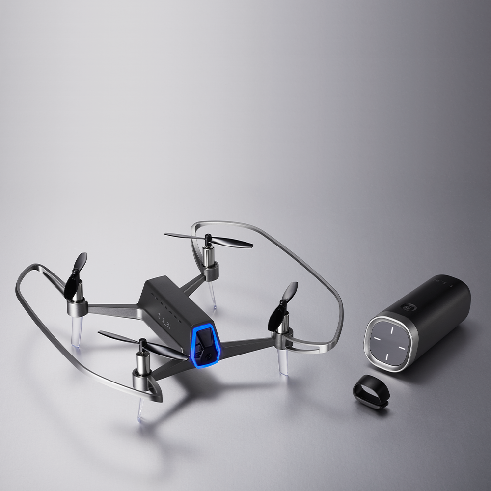 [One-Hand Controller] Flying with two hands is a thing of the past. Zigzag through the air with our patented intuitive controller. Flying becomes second nature once you experience our one-handed controller