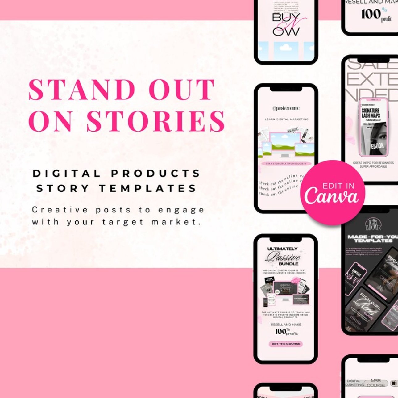 Don't miss out on the opportunity to elevate your digital presence. Purchase the Digital Products Instagram Story Template in Canva today and embark on a journey of enhanced online visibility and potential passive income!