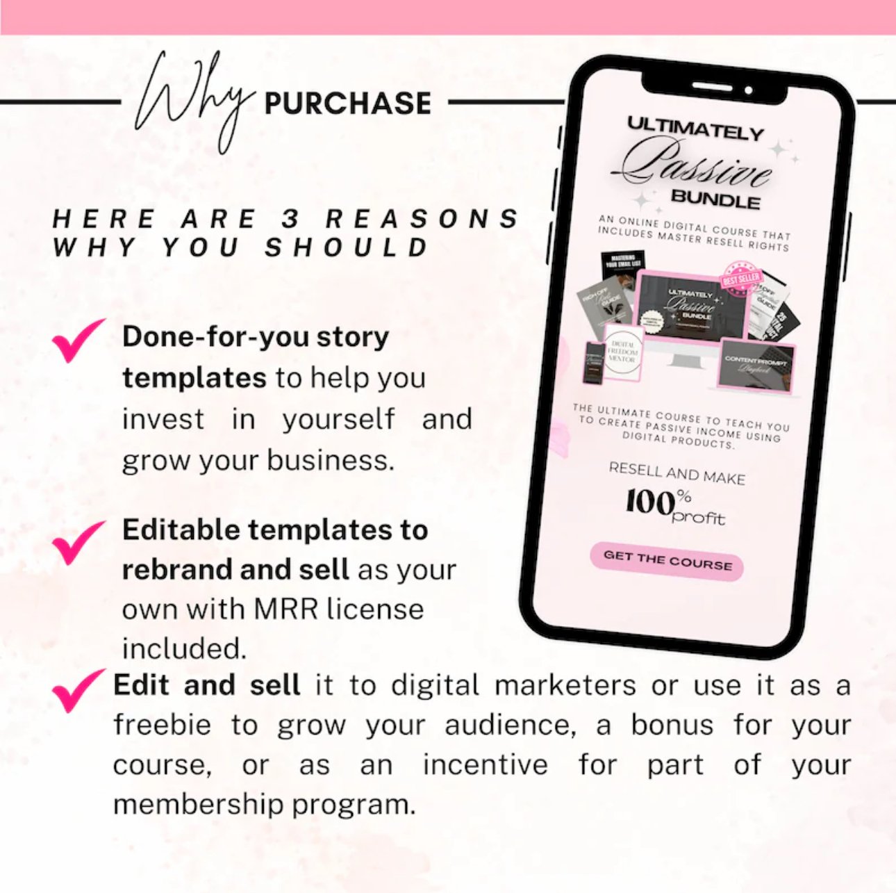 Unlock the potential to earn passive income by utilizing the included Master Resale Rights. Resell these templates and turn your investment into a continual source of revenue, making it a smart and lucrative choice for digital entrepreneurs.