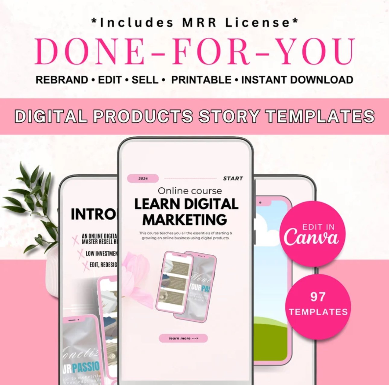 Boost your online impact with this Instagram Story template for digital products! If you're a digital creator, entrepreneur, or marketer aiming to amplify your online presence, streamline social media planning, and create passive income, explore our comprehensive Instagram Story Template in Canva, featuring valuable Master Resale Rights (MRR).
