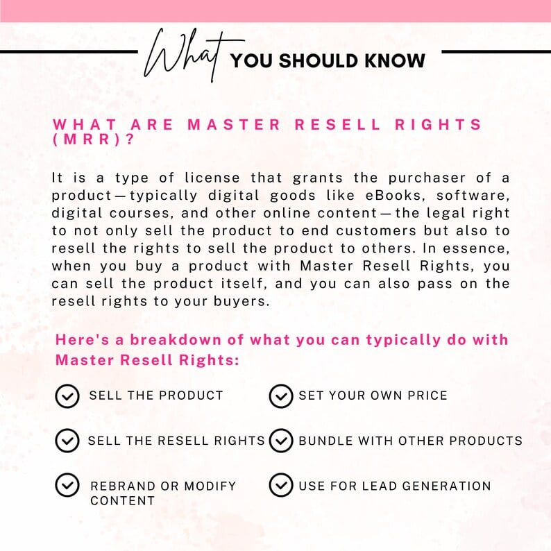 Here's a breakdown of what you can typically do with Master Resell Rights: