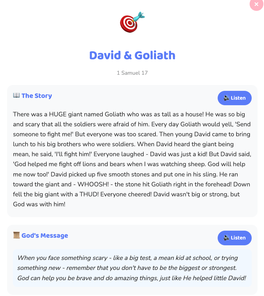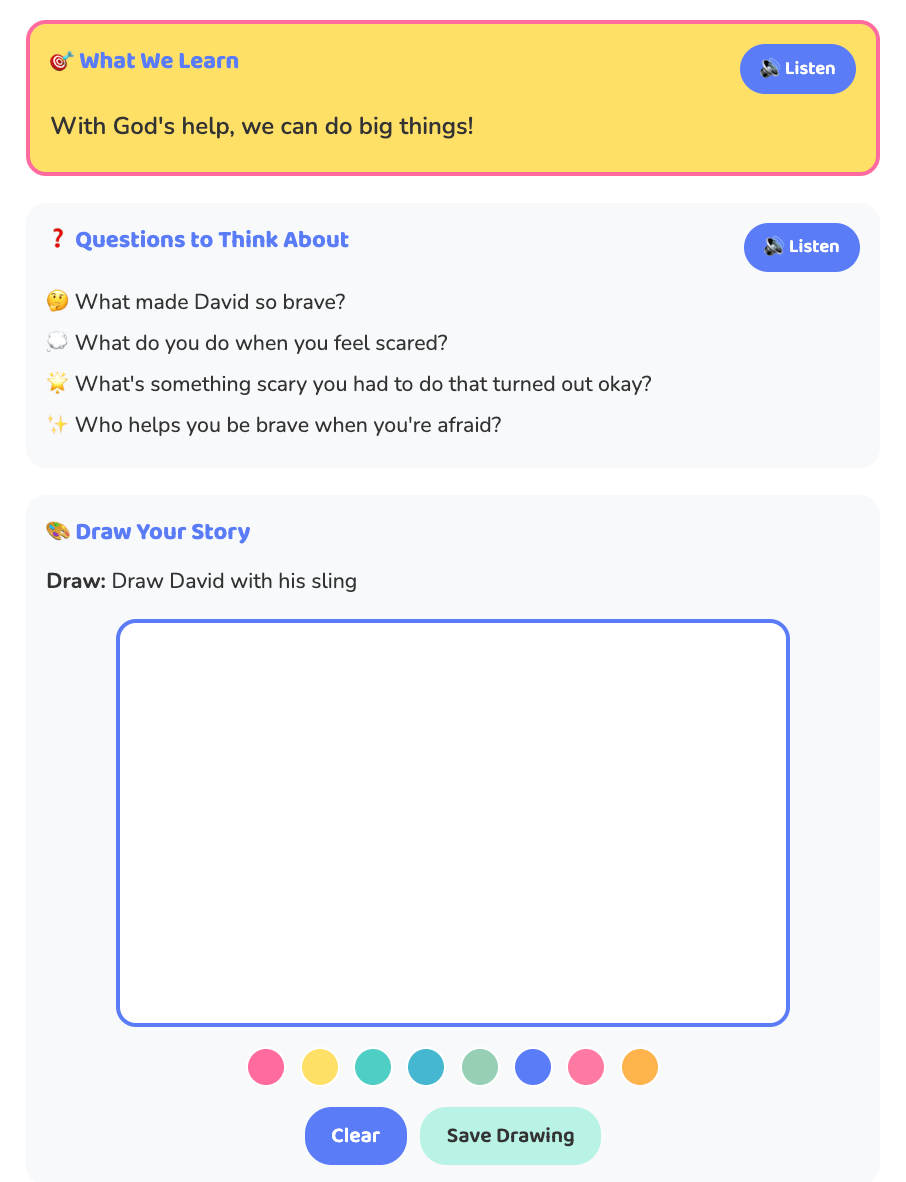 ✔️ Engages kids with faith through fun, visuals, and interactivity