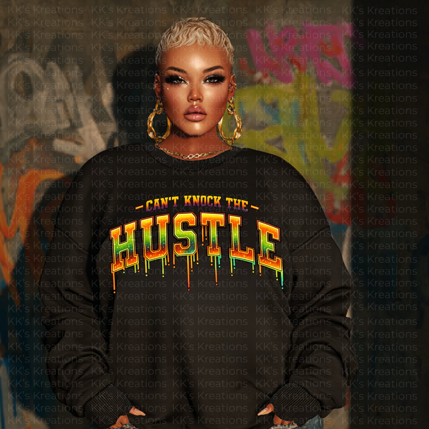 Make a statement without saying a word. This bold “Can’t Knock the Hustle” sweatshirt features vibrant, drip-style lettering that pops against a sleek black base. Soft, comfortable, and designed to turn heads, it’s perfect for go-getters who move with confidence and purpose. Cozy fit. Big energy. Unapologetic hustle. 💛🔥