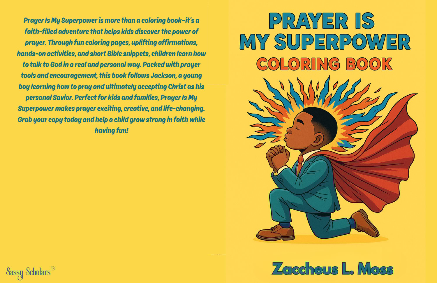 PRAYER IS MY SUPERPOWER is more than a coloring book-it's a faith-filled adventure that helps kids discover the power of prayer. Through fun coloring pages, uplifting affirmations, hands-on activities, and short Bible snippets, children learn how to talk to God in a real and personal way. Packed with prayer tools and encouragement, this book follows Jackson a young boy learning how to pray and ultimately accepting Christ as his personal Savior. Perfect for kids and families, PRAYER IS MY SUPERPOWER makes prayer exciting, creative and life-changing. Grab your copy today and help a child grow strong in faith while having fun!