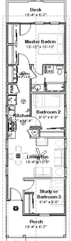 The Charity Cottage home plan has three bedroom and one bathroom.