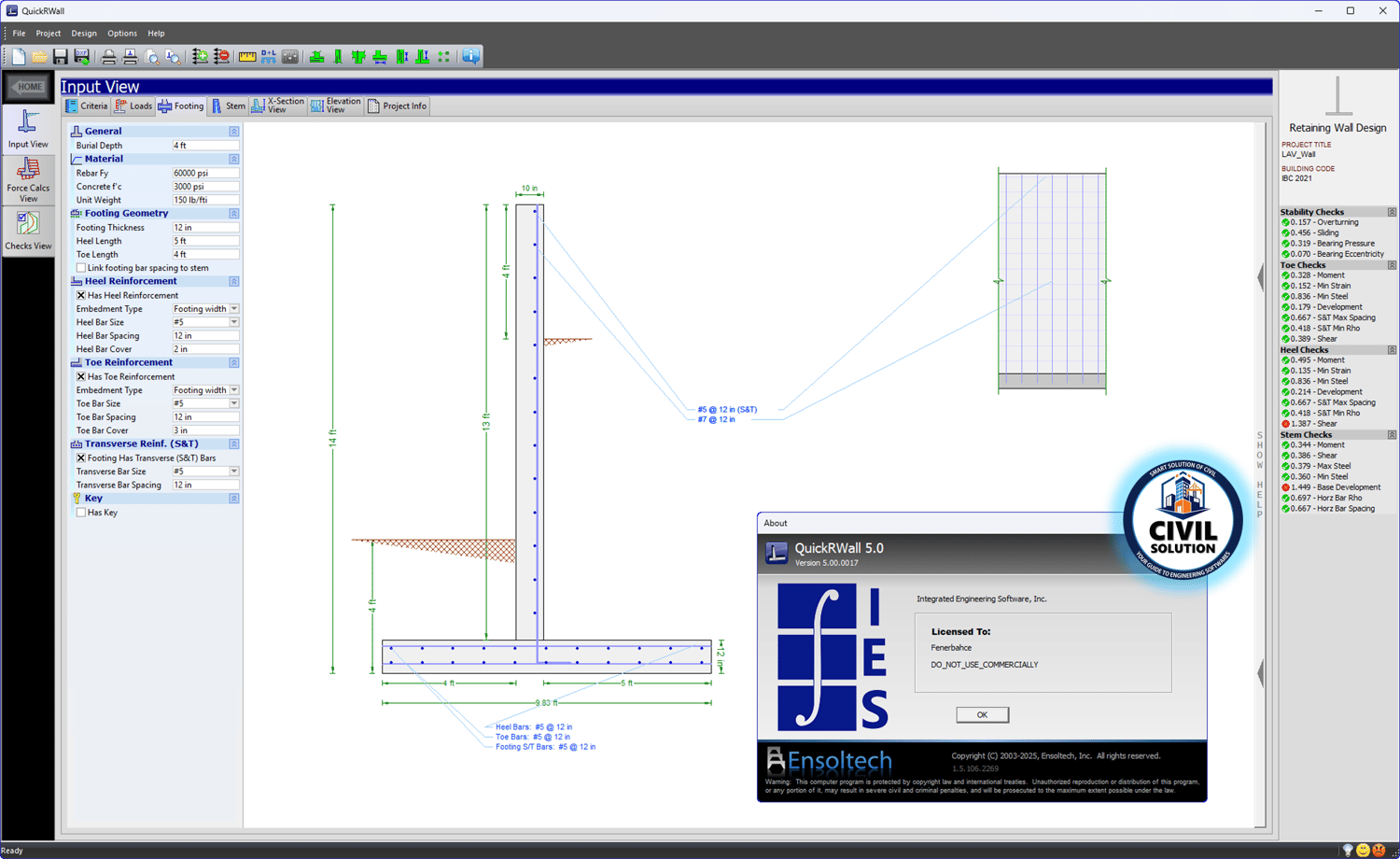 🛡️IES QuickRWall v5.0.0017 is an efficient, graphical software designed for the rapid and accurate design of concrete and masonry retaining walls. It handles various wall configurations including cantilever, gravity, restrained walls, propped cantilevers, and tapered or stepped walls. The program offers comprehensive code-compliant checks, complete with detailed reporting that shows full equations and intermediate data for easy verification.