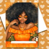 Blank Greeting Note Card | Black Girl Greeting Card. African American Celebration of friendship greeting card