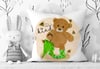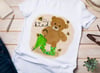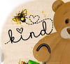 Hand painted bear. ‘Bee (image) kind’ with a few bee friends on a paper texture background and a bit of gold glitter