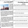 This is a 3 page activity that will include fun facts and new information that the students may not know about this well known landmark. Includes a page alone to let the younger readers know what a landmark is. It gives information about why the bridge is orange, where it is located, and the miles of wire it has to keep it suspended. The reading passage has 12 questions to follow along which will enable students to become better writers and seekers in answers using the text. This reading passage will also encourage students to perform their own research by piquing their interest.