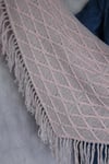 The slipped cable patterning is work using the ‘double-pass’ method, which is fully explained. The fringe edging is created by casting on extra sts before or after picking up sts along the i-cord. These extra sts are worked as a garter stitch border and are unravelled after knitting to reveal the fringing.
